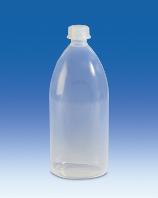 Szűknyakú, átlátszó, csavaros kupakkal, tömítő gyűrűvel